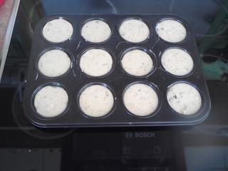 do suchej casti zamiesame orechy, hrozienka, cokoladu, alebo v sezone ovocie aby sa obalili a pri peceni nepadli na dno, potom vlejeme mokru cast zmiesame a dame do muffinkovaca , na fotke, mufiny pred pecenim, a odmerka 🙂 stara dobra duritka