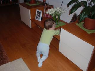 dnes sme boli na klbikoch, vsetko ok, dokina zakazala aby sme malu davali stavat na nozky, co som ani nerobila... len ked ju davam do sedacky, tak sa sem tam zvykne poriadne zapriet.. takze som si vsimla, ze uz nema nozky ako zele 🙂 @weirdo, som sa zasmiala.. no plazit sa to si predstavujem ako pomale zakradanie partizana a lozit, to uz bude taky rychlejsi presun ale este stale bruskom na zemi 😀 moja sa pomaly zakrada, ale stale len dozadu.. uz skoro 2 tyzdne a ziadne postupy nevidim.. aj teraz sa mi tu tmoli popod nohy 😉 uz ju zacina zaujimat co mam v stole, som zvedava, kde to vsetko povykladam :(