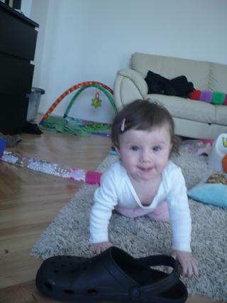 ela po starom - sedi, stoji, stvornozkuje, 1 zub, v noci spi - 4 dojcenia, mlieka malo .... nic nove 😀 😀