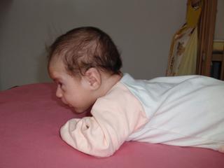 MOj dava hore hlavicku, ale DR: vravela, ze malo...myslim, ze na 2 mesacne babo dost, Lili davala v 3. mesiacoch tak raidne hore hlavu.