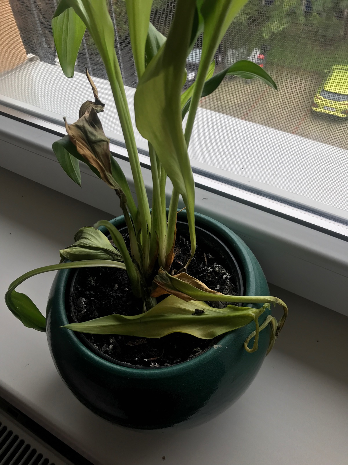 @annaannies skončilo jej vegetačné obdobie. Hľuza sa už pripravuje na "zimu", prestaň so zálievkou a po zaschnutí posledného listu hľuzy vyber a ulož v tme a chlade. Na jar ich znovu zasaď. Ak sa ti s tým nechce "onďať", tak kvet vyhoď/daruj.