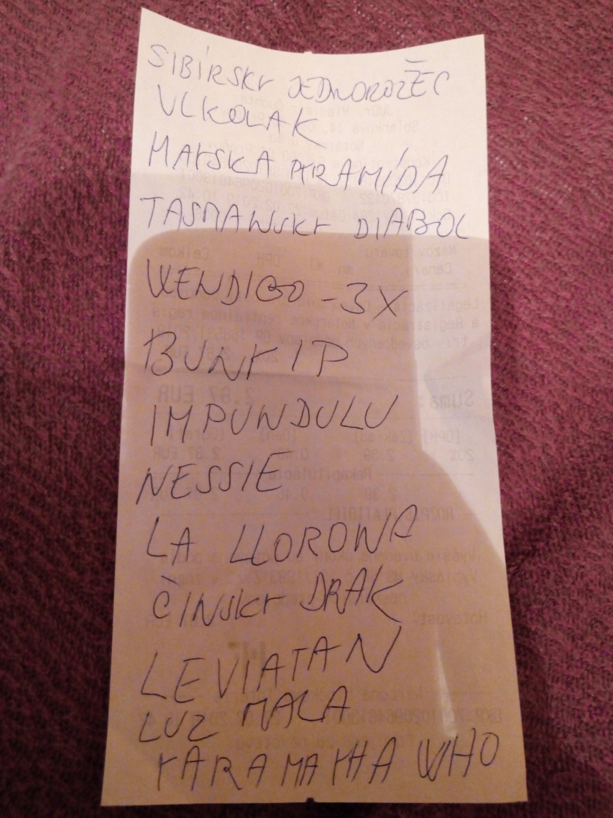 Ahojte, mam na vymenu Tasmansky diabol, Ladovy cerv 2x, Corpo Seco, Leviatan a zhanam Kamajtaci, Wendigo, Impundolu, Zahhak, Mantikora, Ogopogo, Yara Mayha.