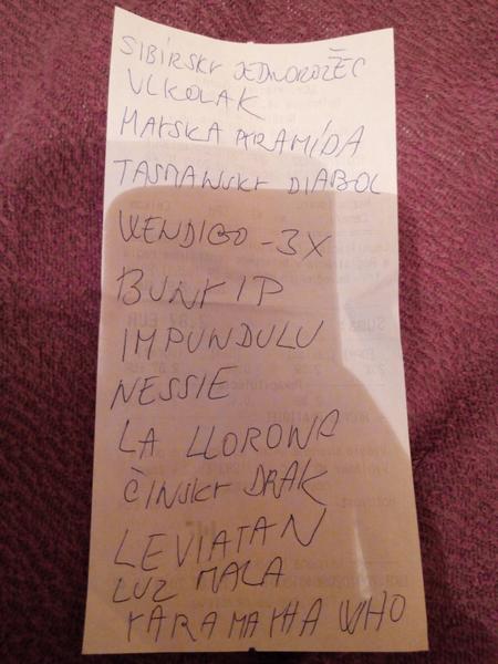 Som z Bratislavy a mám na výmenu: Kraken - Kamajtači - Bunyip - Olgoj Chorchoj - Býk, Korzár, Vlkolak - Wendigo - Ľadový červ - Leviatan - La Llorona - Sibírsky jednorožec - Mayská pyramída - Kamčatské údolie smrti - Tikoloshe. Potrebujem: Adlet - Bigfoot - Roswellské UFO - Piraňa - Corpo Seco - Mokele Mbembe - Impundulu - Viking - Šaman - Yora Ma Yaha Who - Lesovik - Modrá sopka -Gog a Magog.