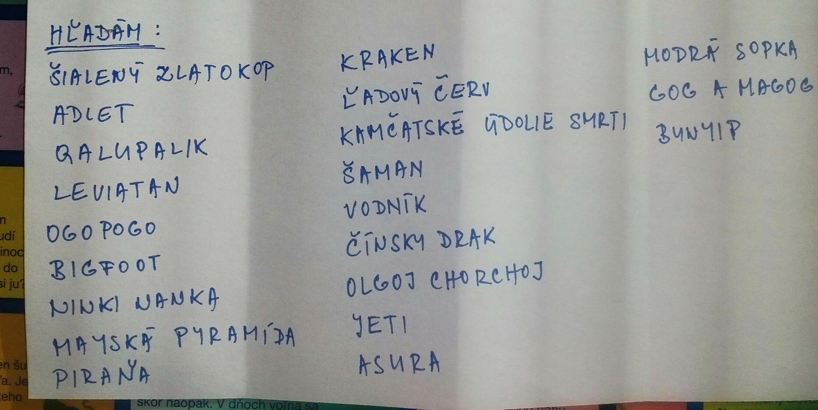 Ogopogo,Ninki Nanka 3x,Sialeny zlatokop 2x, Bigfoot,Tikoloshe,Bezhlavy jazdec,Tornado,Vlkolak,Nessie,Asura,Mokele Mbembe.0,40€/ks+postovne