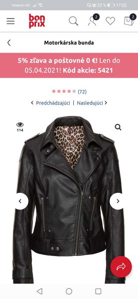 Zdravím žienky, chcem sa spýtať, súrne potrebujem nejakú bundu na jar a chcem čiernu koženú (nie pravú kožu) len problém je to, že mám dlhé ruky (čiže potrebujem dlhé rukávy) a teraz sa nič nedá vyskúšať, ci niektorá náhodou z vás nemá skúsenosti s nejaký eshopom alebo poprípade poradila kde videla. Hľadám niečo kratšie moderného strihu cenu do cca 50€