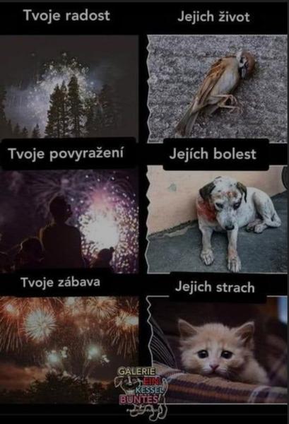 to ze mas hlucheho kocura neznamena, ze ine zvieratka netrpia... plus su petardy a ohnostroje plne karcinogenov, ktore potom vo vzduchu dychame... co mas 12, ze potrebujes tento druh zabavy?