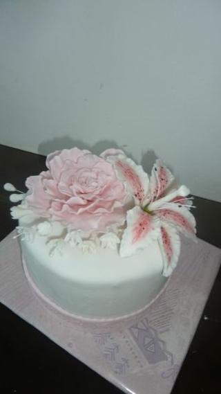 @mia114 a to je čo za kvet tak krásny.Toto jedno je lalia alebo tak nejak sa volá.Ale ten druhý neviem.Ale nádherná torta.A to je tak malá torta alebo tak velký kvet. 😀 😀 😀