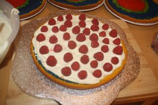 Tak tuto torticku dnes povezieme Saske do skoly, celkom sa mi lubi, hlavne bude super chutit, je v nej vyse kilo malin 😅 A je neskutocne tazka, este musim vymysliet, ako ju do tej skoly dopravim, aby to prezila 😕