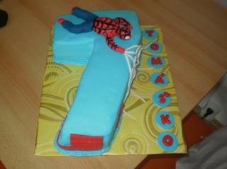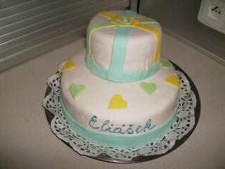 holky,vždy tady obdivuji Vaši prácičku,opravdu tleskám 😉 Dorty máte nádherné.Nemůžu se s Vámi srovnávat,ale já prvně dělala potah z MMF na dort synovi k svátku a dopadlo to takto.Kupodivu i chutnal 😀