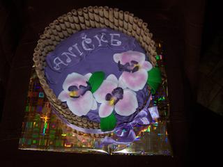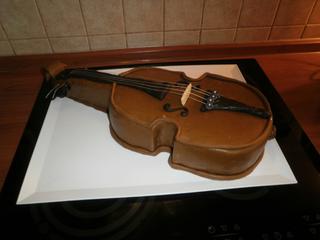 Ahojte cukrarky, tak ja som konecne dozdobila huslovu tortu pre kamoskinu dcerku k 7 narodkam. Korpus klasicka vodova piskota, dzem ceresnovy, krem tvarohovy a karamelovy salcovy, potak hnedy biele cokoMMF, cierne zdobenie klasicke cokoMMF 😉