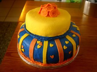 @jakelina - vidis tie srdiecka? Kazde jedno kamufluje trhlinu v potahovke 🤐 Ten zlty potah MMF sa mi spravil v pohode, ta modra sa lepila nech som robila co robila, mam modre ruky - no ako smoulik - doslova - nic sa s tym nedalo robit, nervy som mala, ze som to skoro cele prastila do kosa :( Ja fakt nechapem, co robim zle, ale nieco to urcite bude :( Ale teda snad aspon bude chutit, dala som tam traseny krem a zavarane broskyne, tak snad by malo... za chvilu ju ideme nacat 🙂