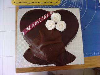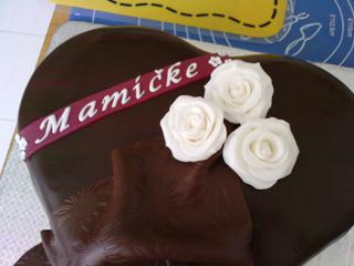 no tak už som srdiečko dokončila...ten nápis sa mi nepáči, prerobím ho, mala som to urobené predom lebo torta mala byť biela s takou fialovou ale nejako sme sa rozhodli potiahnuť čokoládou, lebo tú hmotu nikto u nás neje....
