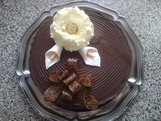 pridávam moje najnovšie: čokoládová bola na doma pre sesternicu,čo prišla na SK po 16 rokoch,želala si čokoládovú,tak mala echt čokinovú. Navrchu je moja prvotina ruža 😀