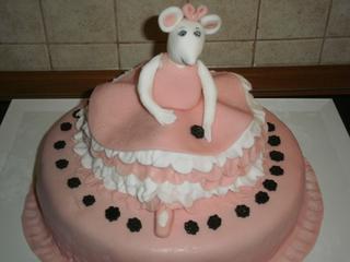 ahojte, tak ja som pred chvilou dokoncila tu tortu Angleina Ballerina, ale s modelovanim som sa riadne vytrapila, najprv mala vacsiu hlavu a podobala sa viac na nu, ale potom jednak stale klesala, a proporcionalne by asi nebolo dobre, oci jasne som nakreslila male, ach. Biele casti potahu je ceresnovy SFF, ostatny je biele cokoMMF