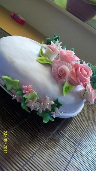 @jerryjanka jé jak se ti povedlo zabarvit tolik hmoty na černo? já jsem barvila jen kus hmoty - smartflex a musela jsem do toho dát všechny možné barvy a půlku černé a pak se to hrozně lepilo a teda ani bych to nechtěla jíst tolk barvy. Jestli má tm rád černou, tak mě se více líbí dorty bílé a na to černé ozdoby, opačně, než jsi to měla, pak by stačilo té černé jen trochu. Ta fialková je moc hezká, to máš perleť nahoře?