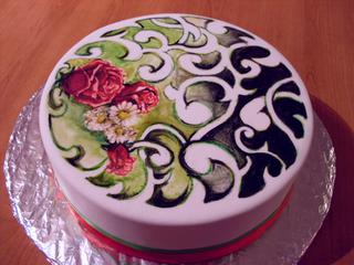 A este toto som nemalovala nejak zeby som sa snazila dodrzovat ciary 😀 , tak mrkajte len jednym okom na to, sa mi nechcelo, kedže to nieje "prava" torta ale len MMF potiahnuta forma od torty 😀 nemala som tie ornamenty ani predkreslene 😖 tak su tam vidiet hakybaky ciary 😖