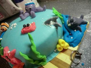 ahoj holky.. tak právě jsem dodělala svůj PRVNÍ dort v životě.. peču, ale dorty ne.. všechno byla premiéra.. hmota je mléčný marcipán a fakt se z něj nedělá uplně nejlíp, zkusím i něco jiného.. je dost takovej tuhej, takže se z něj docela špatně modeluje..