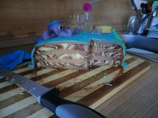 inak som sa bala ako sa mi bude oriezat ten vrch cokoladovy do tych obluckov podla krajky lebo na tortu som to capla cele ale islo to super z nahriatym nozom