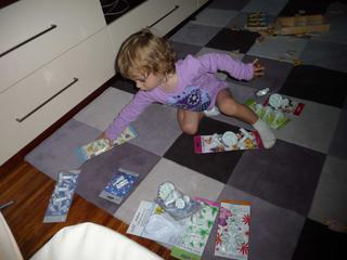 můj dnešní úlovek a malá pomocnice. Jinak to bylo zajímavé nakupování. Prý 500,-, jenže měla jsem u sebe jen 400,-, tak prý o.k. Nepočítala jsem, že se tam zastavím