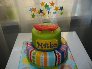 Ahoj holky, jdu si k vám zase pro radu: čím malujete na potahovku např. oči nebo pusu na obličej postaviček, prostě něco, co by mělo být pěkně tenké a přesné? Nějakým potravinářským fixem? A drží to třeba i na mléčném marcipánu? A ještě by mě zajímalo, jak dlouho necháváte zbytky potahovky, např. MMF nebo mléčného marcipánu. Mám docela hodně různě obarvených kousků, kterých potřebuju na další dort třeba jen trošku a nevím, jakou dobu se dají použít. Přidávám sem fotku posledního dortíku, ale je to proti těm vašim nádherám fakt hodně jednoduché 🙂 .