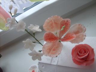 @adul67 ja som mala uz hmotu zltu a to som len tak potrela niekde trocha praskovej zltej a bordovej ja som nerobila tie kvety z bielej aj ten ibistek je bordova hmota a uz som len troska dofarbila praskovou
