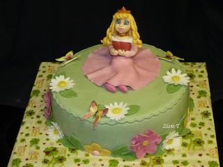 tu je moja princeznovská torta - moja prvá princeznička v živote ... pôvodne mala stáť, ale bola tak ťažká, že sa mi prevažovala dozadu, tak som jej ešte dnes ráno musela odseknúť nohy a spraviť nové, aby sedela - poviem vám, nervy, stres, strach, či mi to vytvrdne ... ufff