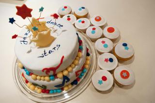 Tema bola jazz dance pre dvadsat 6-7 rocnch deti, tak, aby to bolo pre dievcata aj chlapcov.som sa toho strasne, lebo pre pani, co si to objednavala som robila aj celu detsku osalvu a den predtam, som si to tam bola pozriet a to som nemala! Ona patri totiz ku miliardarom v nemecku a ani som s nou poriadne neprisla do kontaktu - vsetko vybavovala jej sluzka!!! Dodnes neviem, ako sa jej to pacilo a ci mi vobec zaplati. Zaplati mi len vtedy, ak som ju presvedcila a spravila veci podla jej vkusu... No tak uvidim, ci mi tento tyzden zavola a co povie... takze tu je moja torticka... dole boli noty a na drhom poschodi vyrezane tancujuce figurky, len to z tohto pohladu moc nie je vidiet.- je to dieca, co ma tak hore vykopnutu nohu a je v zaklone....