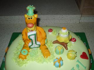 inak požiadavka na túto tortu bola tiger má sedieť v tráve, držať sviečku, na hlave má mať čapicu a za menom má byť srdiečko, ostatné nechala na mňa, len dúfam, že dobre urobila 😀 😀 😀 inak na živo sa mi tá torta páči viac ako na foto 😝
