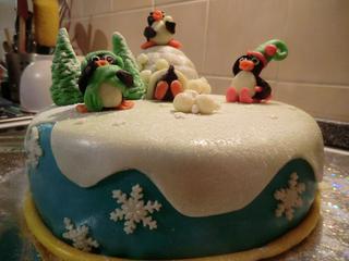 Ahoj všem.. tak jsem udělala svůj třetí potahovaný dort 🙂 omluvte tu barvu, ale ještě jsem si nekoupila bělobu.. tedy bude pod stromečkem😀 ale to mi bylo prd platné tak jsem to prostě udělala tak.. ale je to jen pro radost pro kolegyně do práce žádné zakásky tak to berve v uvahu.. díky vám jsem se vše naučila 😉 díky díky je to klasika tučnáci, ale ta asi nikdy neomrzí 😅