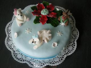 Ahoj... ja som piekla este pre druhych susedov , a aby si nezavideli robila som velmi podobne torty 😕 . Tu je foto tej druhej , je tam viac figuriek 🙂 ale ta vianocna ruza je ubohejsia 😅 ma menej listkov, uz sa mi nechcelo robit viacej, nemam na tie listky vykrajovacku , ale do dalsich vianoc si ju zaobstaram. 😉