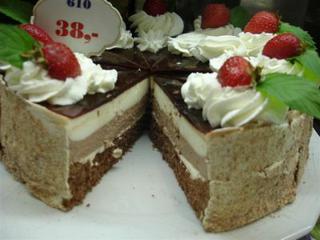 @lencza ten dort neznám podle názvu, ale podle fotky to vypadá na tvarohové nebo pudinkové náplně - vanilková a čokoládová