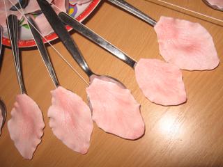 @dajna11 já jsem zkoušela taky jak to děláš ty a taky to šlo, jenom mně se nechce vyvalovat každý lupínek zvlášť. Vykrájím si všech šest, šup na ně drátky, na to zezadu kousek hmoty a do žikovače a je to hotové hned. 😉 Každý má svůj osvědčený způsob. Na to je i podložka, která má takové žlábky a udělá ten silnější střed, ale já ji nemám ☹