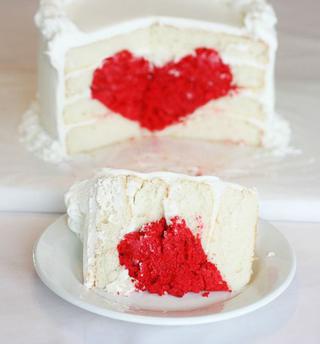 ta torta s tým srdcom vo vnútri -to červené je upečené ofarbené na červeno cesto? A nie je to potom suché bez plnky jesť docela veľký kúsok červený ? Ale inak je to pekné