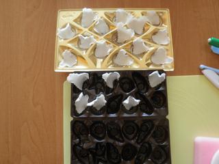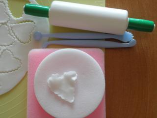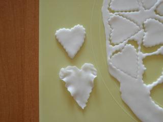 Vykrojím srdíčka, ztenším, na kuličku jich asi pět nalepím a zbytek nalepím na kolečko a doprostřed pak vlepím tu kuličku. Dám vyschnout do skleničky nebo nějaké misky, aby to drželo tvar.