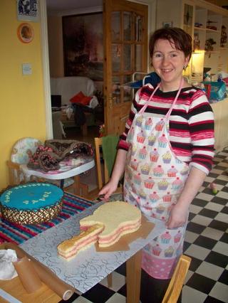 moje včerejší skoro-noční můra... pekla jsem u maminy a dort si moc nerozuměl s její lednicí... málem se mi roztekl, ale včas jsem si toho všimla a putoval v krabici na balkon... jo a příště gelovkama už takovýhle obrázek nemaluju, je to dřina... 😀