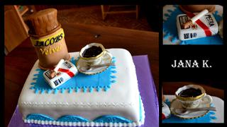 ach babenky ahojte,prosim nesmejte sa toto je moja jedna torta tohtotyzdnova ale mala som z nej nocne mory...sama som si za to mohla,mozno by bola lepšia 3d kava,celkovo je to hruza ale ta kava joj moje nervy bola robena z rolady a ta svinucha sa mi zacala naklanat :( neslo s tym uz nic urobit bola makka ako.... a pani si po nu mala co nevidiet prist,tak som jej povedala pravdu a ta bola taka nadsena ze mi este aj 5 e tringelt nechala baba zlata 🙂 len dufam ze mi nenapise ze sa jej prepadla...pritom v nej boli 3 paličky...