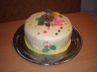 Holky, tak můj čtvrtý dort z mléčného marcipánu na zítra pro rodiče jako překvapení 🙂