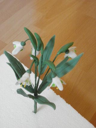 Jenom tak podle oka vykrojím list, položím drátek namočený v lepidle a z hmoty udělám tenký váleček a ten na ten drátek kosticí přitlačím, potom dám celý list do žilkovače a stlačím, vůbec to pak není vidět, že je tam ten drátek zakrytý tím válečkem hmoty.