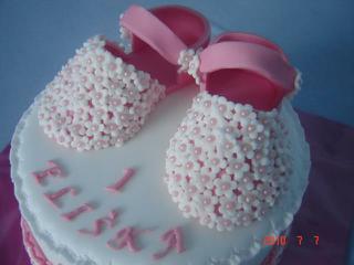 Holky prosím, neviděly jste v nějakém obchodu nebo supermarketu růžové kuličky na zdobení. Mám udělat papučky, celé polepené kytičkama a uprostřed je malá růžová, taková perleťová kulička. Dívala jsem se už tady v Opavě, ale nic takového jsem nenašla. V internetových obchodech mají jenom takové celkem velké. Ještě jedu dnes do Tesca, tak se podívám tam. Dort má být přesná kopie, dokonce i jméno je stejné, Eliška a 1.