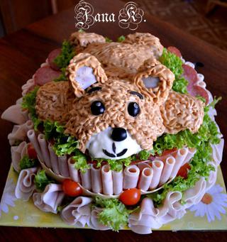 Ahojte šikulky ja vzdavam čitanie lebo nemam šancu to stihnut,no aspon poctivo laikujem vaše krasne dielka,pridavam svoje,take celkom obyčajne a moju prvu slanu tortu tak sa prosim nesmejte 🙂 akože ruže robila sestra, lebo ja som si nestihla naštudovat ako sa robia :(( idem odpočivat lebo ked si predstavim bud.tyžden na ktory mam 1000 zakuskov tak mi je ťažko :(