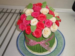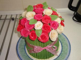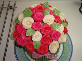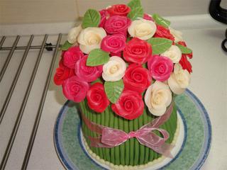 Jako na ty růžičky se moc nedívejte měla jsem blbej marcipána pořád se to trhalo 😝 , stonky mohly být tenší, ale já jsem ve21 hod, zjistila, že mi ten marcipán vůbec nebude stačit tak jsem dělala novej, a už jsem se s tím moc nesrala, ale stejně jsem skončila přesně o půlnoci 😀 jsem pomalá 😅 máte můj obdiv fakt velkej kolik těch dortů stíháte. 😉