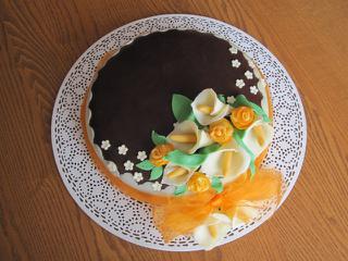 @alenv ahoj, moje k šedesátinám, dělala jsem včera, všechno na dortu je čokohmota, ale potahování nic moc teda - rychle to tvrdne, rozválet na tenko mi to úplně nešlo, takže pak po potažení se mi dole udělaly varhánky, takže přes to musel jít ještě pásek krajkový - ten sem dala z bílé, ale měla sem jí málo, takže to stejně prosvítalo a musela jsem ještě maskovat mašlí 🙂 . Jinak jako ozdobičky naprosto v pohodě, chuťově taky dobrý, ale potahovat už asi nebudu, ani to moc nechutnalo, lidi mi dort z tý čokopotahovky vyjídali - to radši poleju příště.