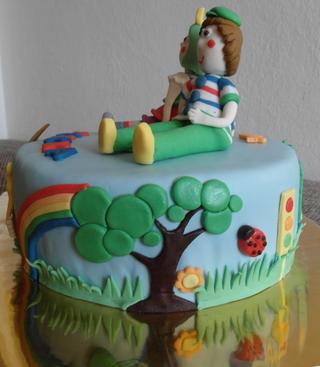 ale myslela jsem, že překousnu svoje dítě i manžela (toho snad asi ještě víc)... měl malou hlídat, aby mi nelezla do kuchyně (je to malej mlsounek). no, samozřejmě že se tam dostala a hrábla mi už skoro hotového do dortu 😠 tak jsem to maskovala velkým a děsně "nenápadným" trsem trávy... zrovna se musela holka trefit do přední části... 😖