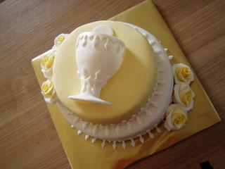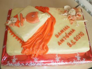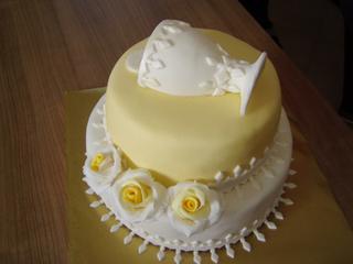 Ahojte, v prvom rade chcem pochváliť všetky šikulky. Tortičky sú krásne, ja mám ešte veľa pred sebou, kým sa dopracujem na takéto rovné, pekne úhľadné torty. Ak môžem pridám sem sestrinu (poťah robila zo salka) a moju, pre známych na prijímanie (poťah - mliečny marcipán). A vďaka za kopec rád, ktoré som sa tu dočítala.