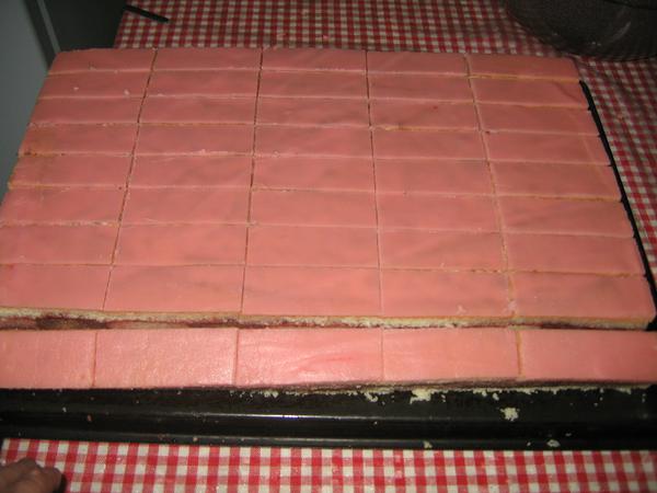 Potom miesame vareskou,alebo metlickou..kym nezbelie a nezhustne zafarbime a sup na kolac, rozotrieme...a po zattuhnuti krajame 😀