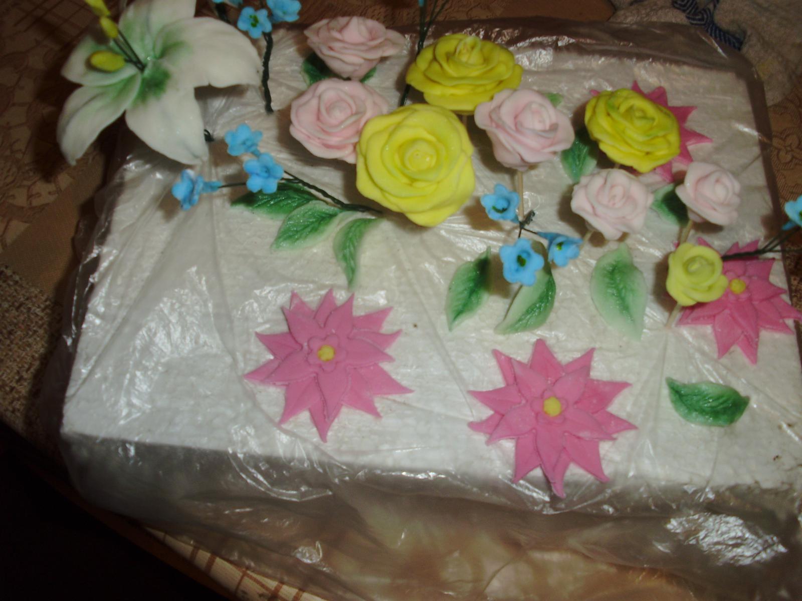ahojte chcem sa len spítať ak mi môžte poradiť ešte nikdy som nerobila so smarflexom poťahovanie .Urobila som si kvietky so smarxlexu ale obávam sa že ked to poťiahnem dnes či sa mi v chladničke ten smarflex moc nenavlhne tortu zajtrá by chcela darovať k 60a chcem aby bola ok.Tie kvietky som robila prví krát a tie tmavo ružové tam nedám.