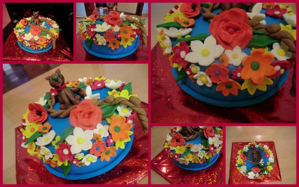 inak nizssie je aj moj prvy pokus o stencils s cera hmotou, katastrofa, skoro som nad tym plakala... kedze to bola slahackova plnka, torta makka, kraje neboli rovne, mysela som, ze sa zblaznim, nakoniec som to musela robit na extra kusky potahovky a popriliepat na tie nevydarene casti... este aj kvet som chcela na drotikoch a nedaril sa mi, aj malo casu aj malo skusenosti, nakoniec nez som ho uplne pokazila som ho radsej dala dolu z drotikov a pospajala ho bez toho... nuz... kazdy sa ucime na vlastnych chybach 😠