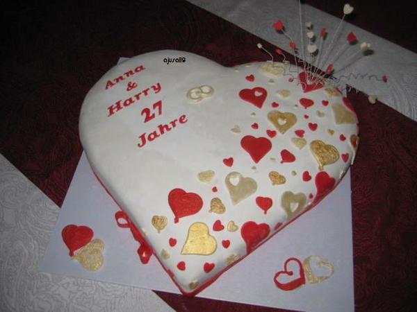 Srdce pre majitelov nasho mekaca na 27.vyrocie sobasa(vanilkova piskota,jahody s jahodovym pudingom a tvarohovo vanilkovy krem-nieco podobne ako pribinackovy,potiahnute pravym marcipanom.)