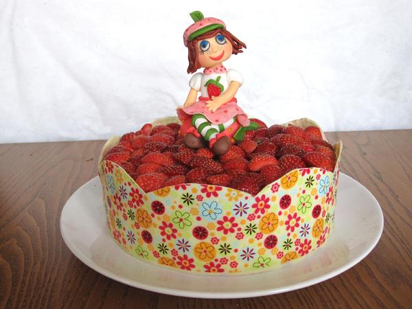 Moje dnešní, čokotransfer, piškot, nápln šlehačka, zakysaná, jogurt, jahody.............. postavička měla být holčička jahůdka, no úplně to asi není, dělala jsem volně podle obrázku, ale snad se bude líbit 🙂 . Dala jsem jí tam jen na focení, předám jí zvlášť, ať si jí pak posadí před předáním, myslím, že ty jahody tu potahovku roztopěj ☹
