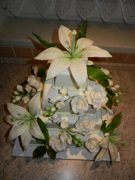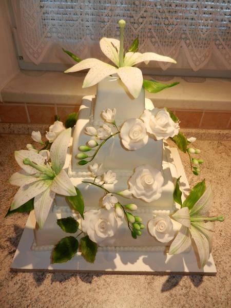 @artepf ja sice nepeciem torty a velmi sa v tom ani nevyznam, len sa sem chodim kochat. ale podla mna by ta torta bola krasna aj bez tych lalii, len s ruzami a freziami. lalie ako take su spravene uzasne, len tie mi tam viacej vadia ako tie frezie.. ale pokial bola poziadavka na tortu s laliami, tak by som asi dala prec tie frezie...inac ta torta je dokonala, fakt krasna, kvety su ako zive 🙂